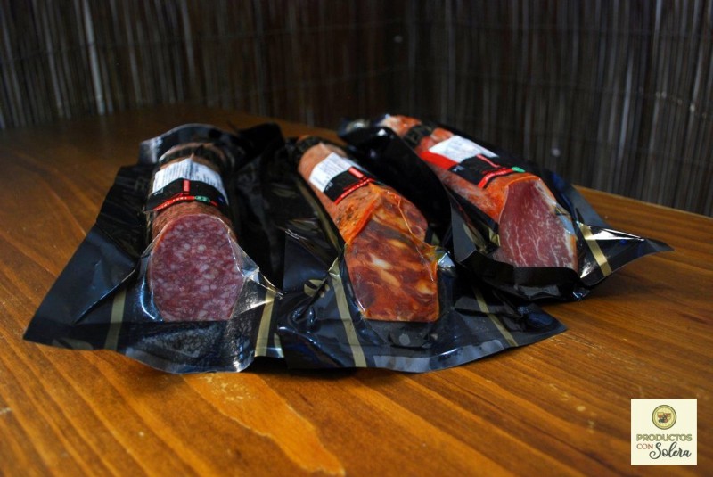 Lote de embutidos ibéricos de bellota de calidad superior gourmet compuesto por un salchichón ibérico de bellota, un chorizo ibérico de bellota y un lomo ibérico de bellota. ALERGENOS: SIN GLUTEN Y SIN LACTOSA.